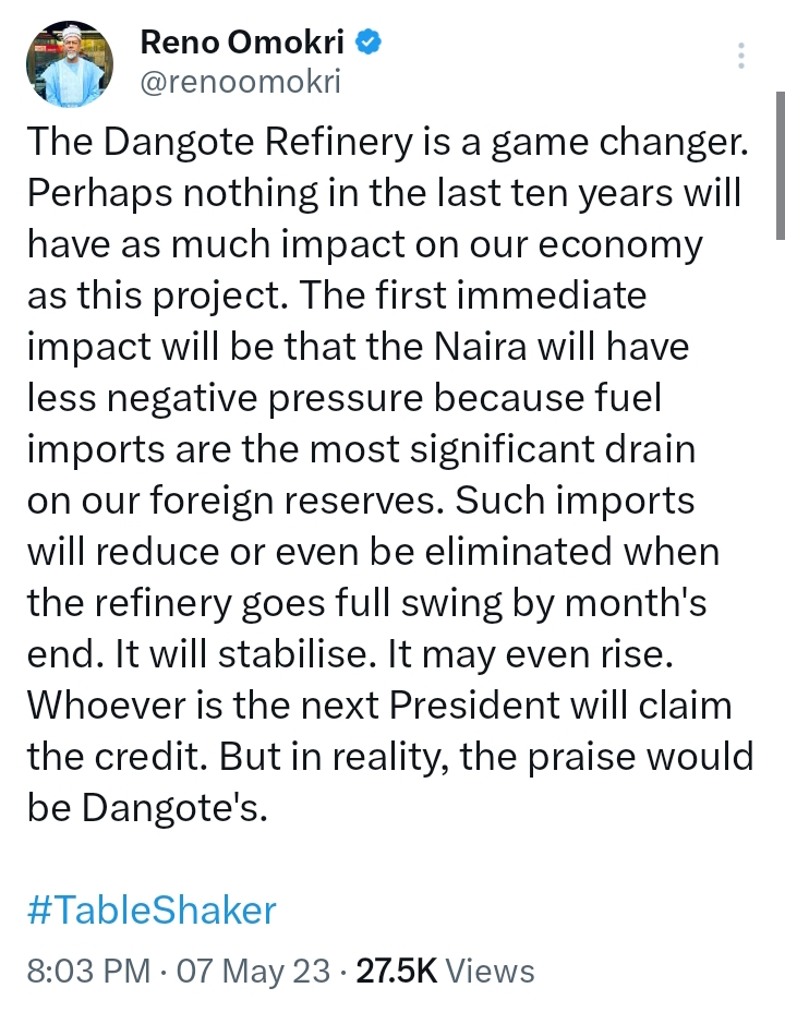 Reno Omokri Tweet ๐Ÿฆ